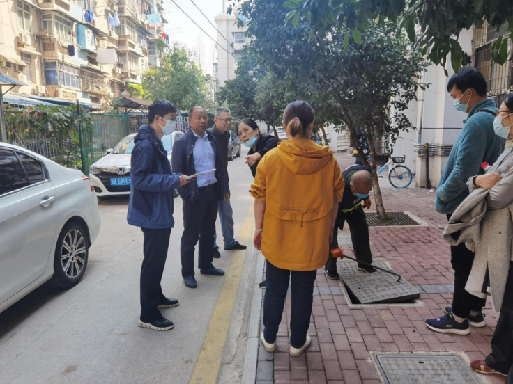 青山区水务和湖泊局现场调研,协调解决111社区下水管道堵塞问题