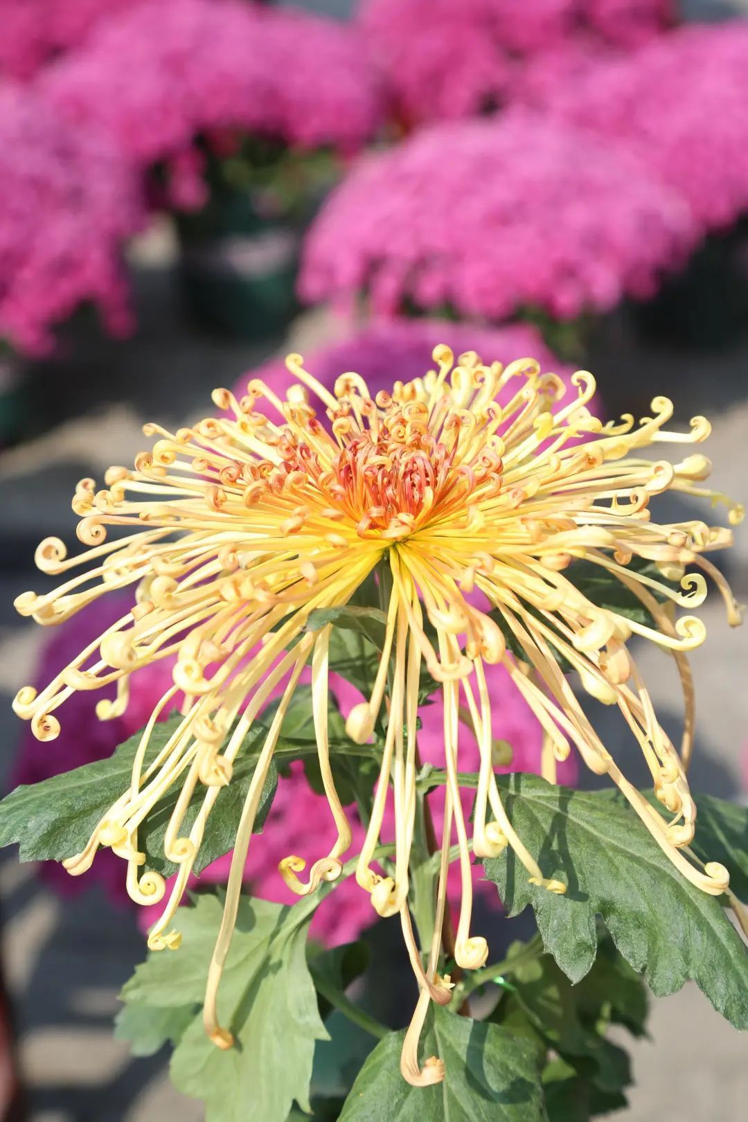 值得一提的是,本届菊展“移师”新建成的地铁5号线和平公园站广场,占地近3000余平方米,设有主景展示区、菊艺小品展示区和品种菊展示区,近300个品种的6万盆菊花将这里装扮一新。