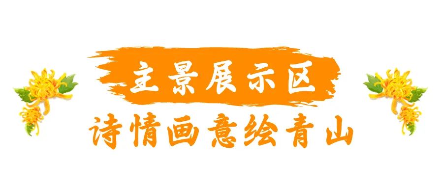 主景展示区——“诗情画意绘青山”位于广场正中央,全手工搭建,采用各类菊花层层裱扎,打造出峰峦叠翠,瀑流飞泻的美景。
