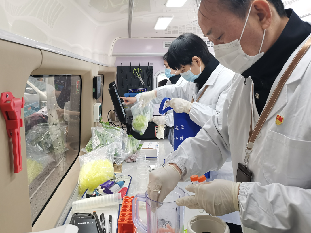 青山区市场监管局在白玉山时代龙腾市场进行食品监督抽检