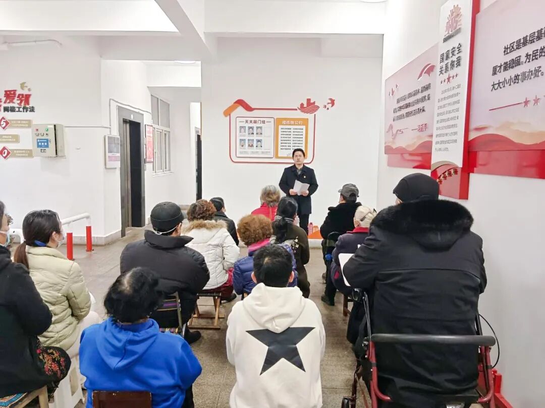 △武汉市检察院挂职青和居社区党委副书记王力为居民宣讲党的二十大报告。