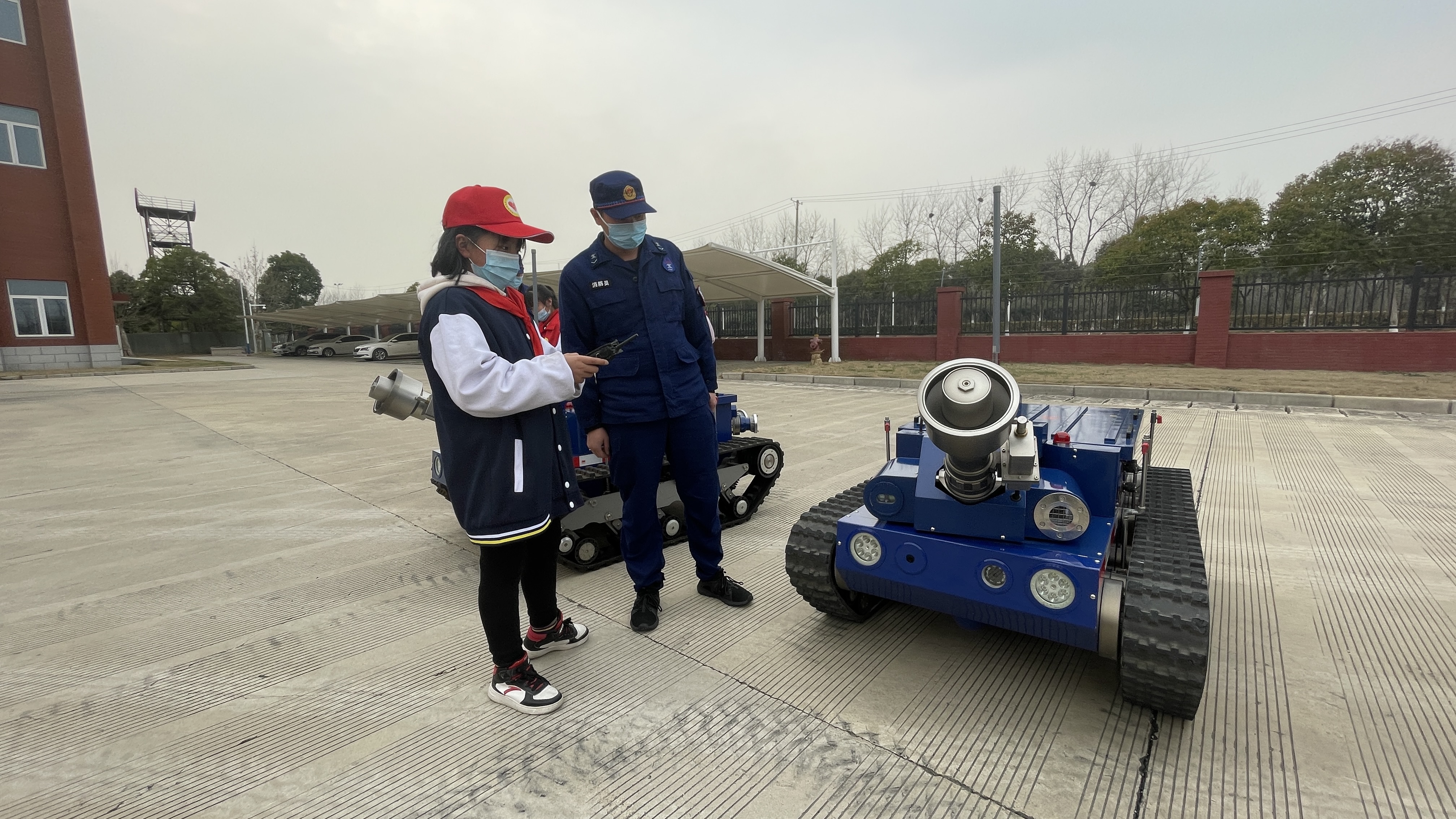 “前进!跨越障碍!发射水炮!”2月28日,武汉市青山区钢城第十一小学四年级少先队员代表走进中韩石化科普教育实践基地,参加了一场趣味横生的研学活动。二班的黄思妍在中韩石化志愿者的讲解和指导下,手持遥控终端,远程指挥起一台小巧的防爆灭火特种机器人开始执行救援任务。轻松翻越障碍、自如钻进消防员到不了的火场、发射炮智能选择多种喷射方式......了解到这个“小小钢铁侠”的惊人武力值,不少队员和黄思妍一样,成了忠实的“铁粉”。