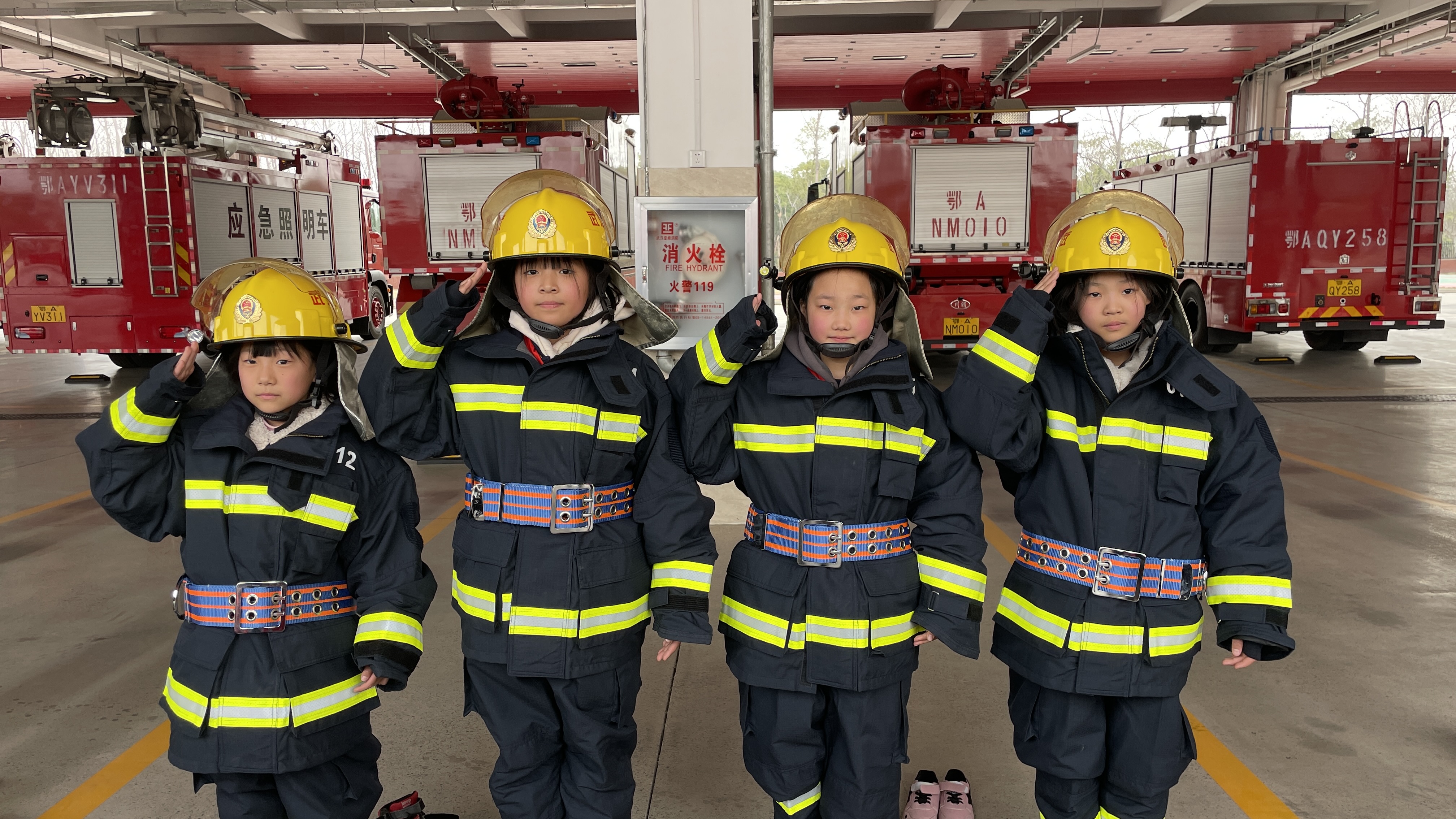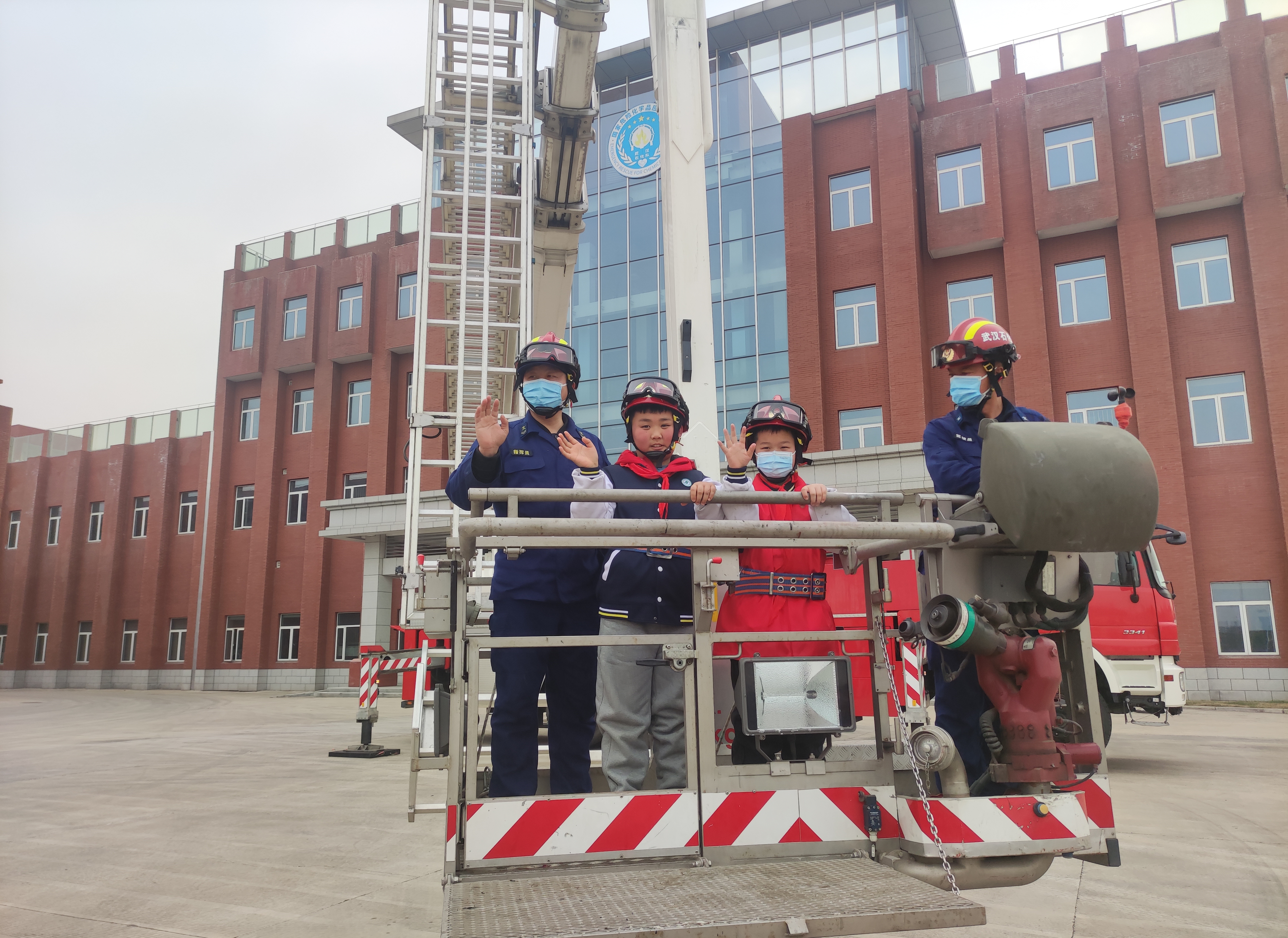 在中韩石化应急救援中心冯队的带领下,队员们还体验了不少消防救援的新科技。44米级的云梯车,瞬间即可升梯至工作高度,让孩子们零距离体验高空救援作业;戴上安全头盔,穿上消防防护服,背上正压式空气呼吸器,套上消防胶靴,二班的彭嘉睿挺胸昂首,郑重地敬了个军礼,他兴奋地说:“高科技的消防员太酷了!”