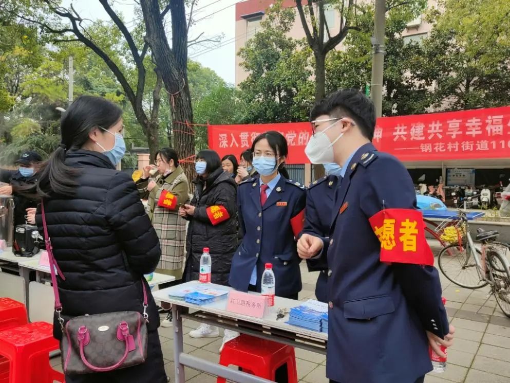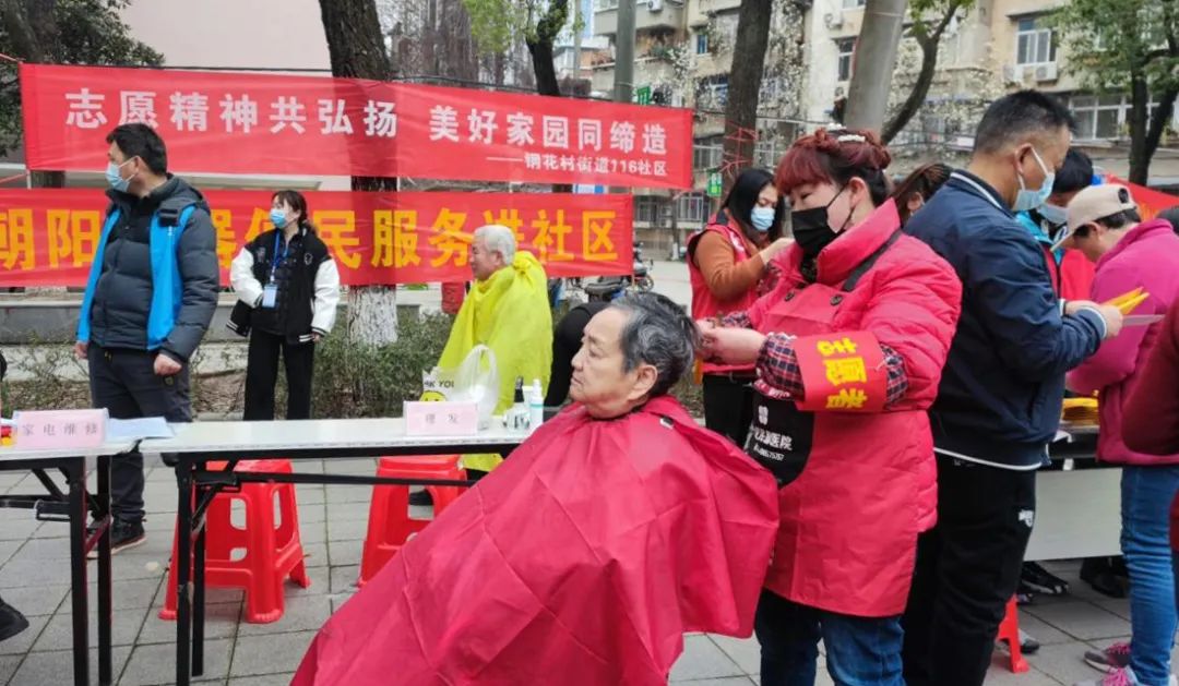 你有所需,我必有应,税务志愿者向居民宣传换购住房的税费优惠政策;免费理发服务点前,理发师傅手中的剪刀上下飞舞,居民们脸上绽放着笑容……