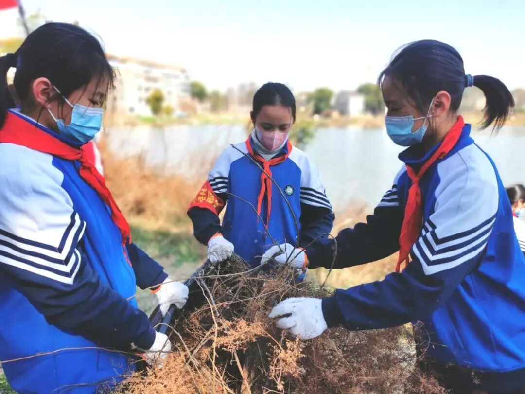 义务劳动现场位于学校大操场栏杆外的严西湖岸的一大片绿地,这里水草丰茂,存在部分卫生死角,需要及时清理。大家一起动手,捡拾垃圾,清除灌木杂草,平整坑洼地面,绿地不到一个小时就恢复了整洁。