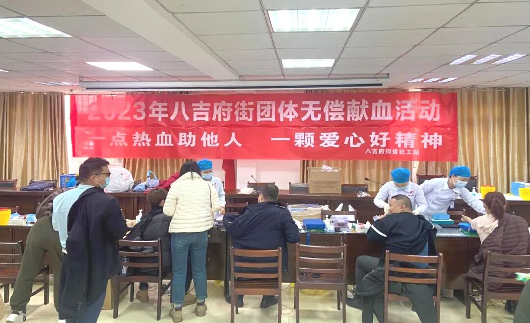 一点热血助他人,一颗爱心好精神,为弘扬乐于奉献、关爱他人的精神,八吉府街组织开展了团体无偿献血活动。