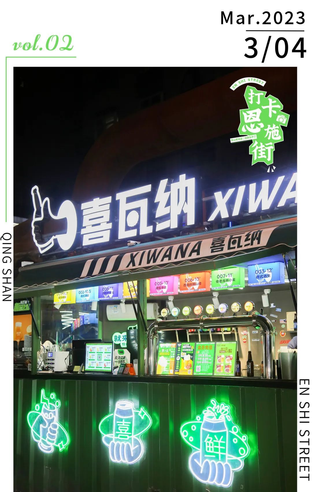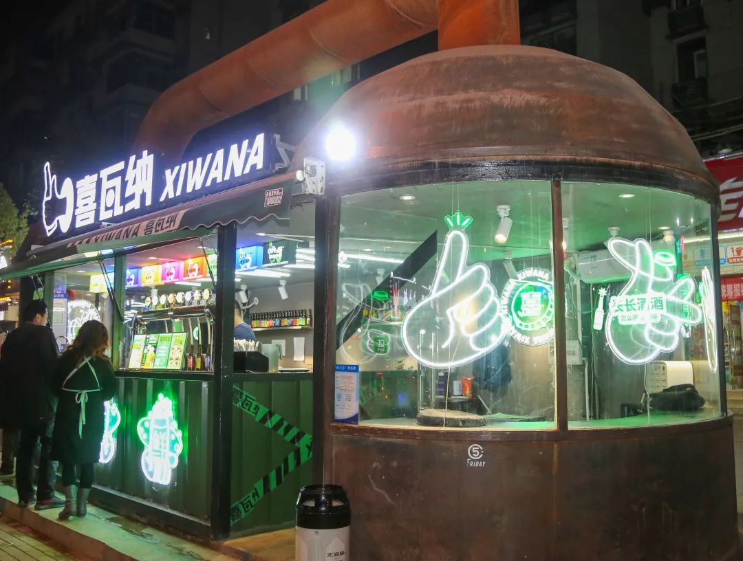 每当夜色四合,华灯初上,但凡经过的恩施街的吃货,总会被喜瓦纳硬核复古的外观结构以及极具赛博朋克的内部装修风格所吸引。这种颇有网红潜质风格的建立,还要从喜瓦纳的“诞生”说起。