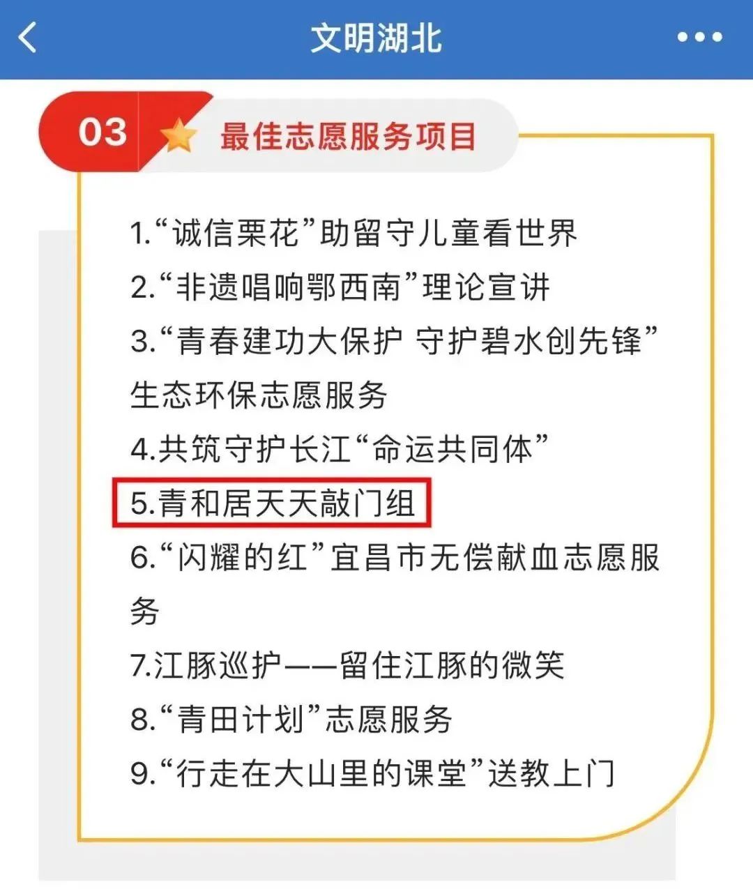 青山区工人村街道青和居社区“天天敲门组”入选湖北省最佳志愿服务项目。