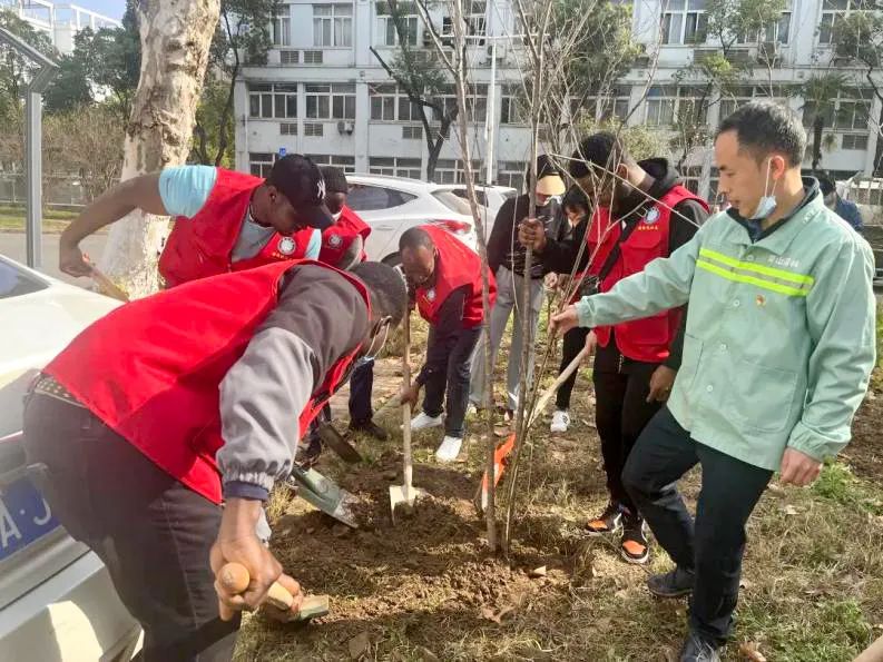 参与活动的武汉科技大学留学生深有感触地说:“在校园植树,对我们来说是一种全新的生活体验,更能提高大家的劳动意识,用行动为大地增绿。”