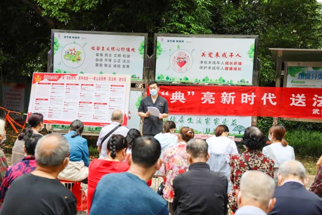 青山区人民法院在青宜居社区开展“‘典’亮新时代 送法进社区”普法宣传活动。