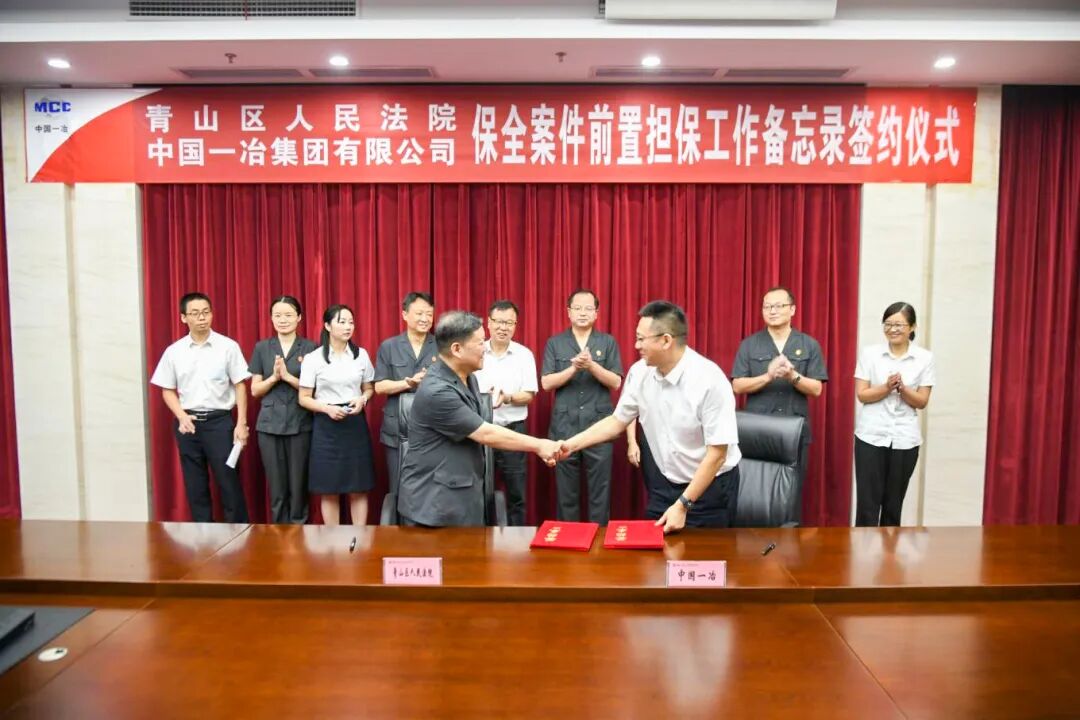 青山区人民法院与中国一冶集团有限公司签订保全案件前置担保工作备忘录。