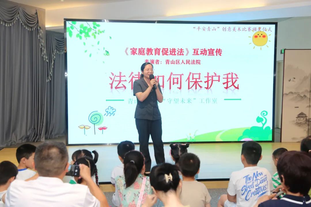 7月2日,“我眼中的平安青山”——2023年平安青山创意美术比赛颁奖仪式在青山区图书馆隆重举行。区委政法委、团区委、区妇联、区文旅局的分管领导出席仪式并颁奖,获奖选手、教师、学校代表及学生家长等近100人参加仪式。