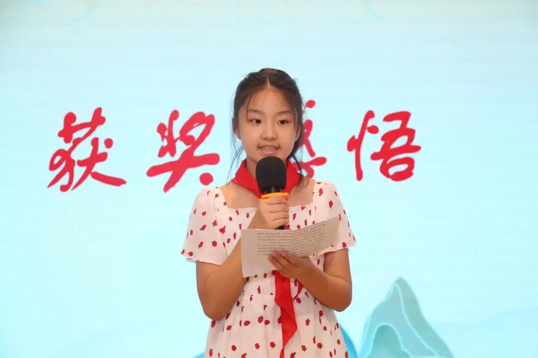 随后,幼儿组、小学低年级组和高年级组获奖选手、以及优秀指导教师和优秀组织学校代表先后上台领奖,现场响起热烈的掌声,不少家长自豪地举起相机,记录孩子们获得荣誉的开心时刻。