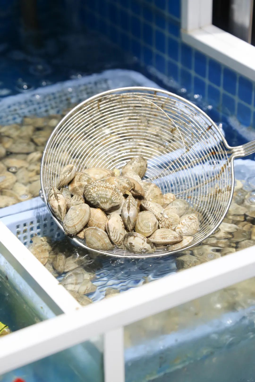 一进店就能看到大海鲜池,新鲜空运的海鲜无比诱人,无论是乳山生蚝,还是丹东黄蚬子,现点现捞,鲜活可见,光是这一点就让人把期待拉满!