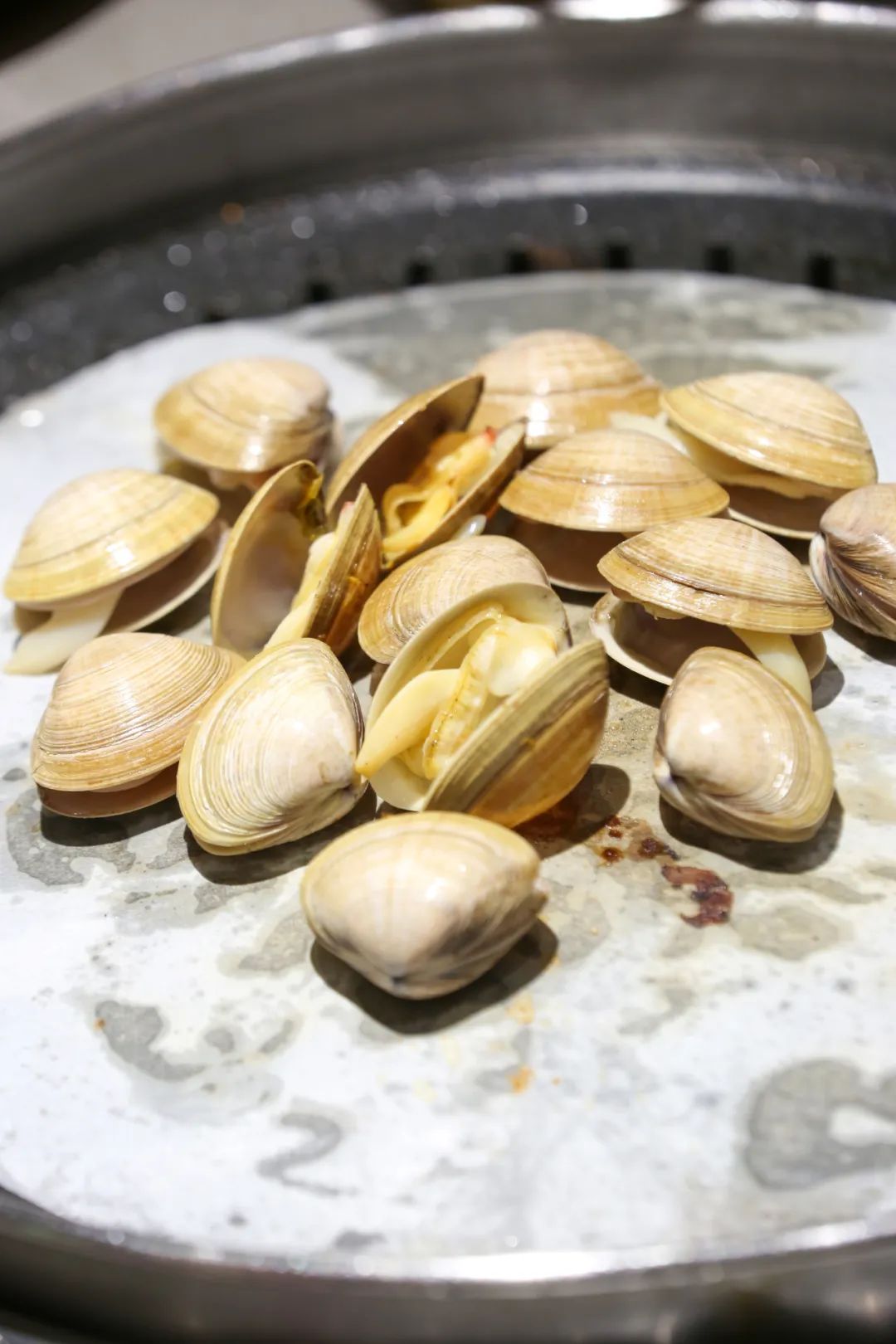 丹东黄蚬子一上桌,就闪耀得让人看不见其他菜品。金黄色的黄蚬子羞涩紧闭,但也难抵烤盘的热情,只需几十秒,黄蚬子变开口把歌唱,肉质在汁水中跳动,壳内的每一寸都是美味的化身。