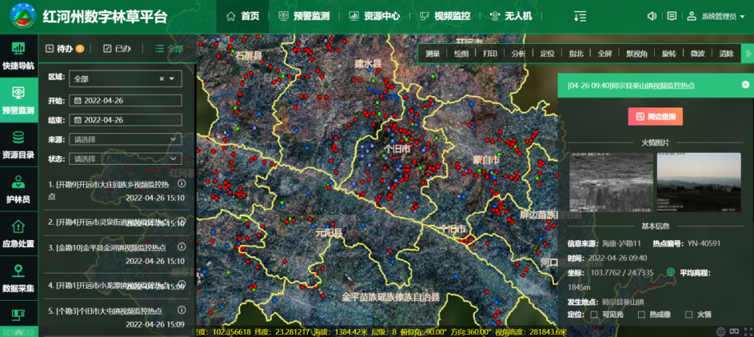 在这片土地的高空,星图慧安利用自主可控的云海、葵花等卫星数据,成功判识、监测火情,并推送火情信息等。空中,无人机采集高清影像和视频,巡护林火灾情;地面,视频监控网作为监测补充。屏幕上,火情分布、火情标绘等实时显示,周边分析、应急调度等救灾方案迅速响应,灾后评估数据及时更新,实现了林火提前预警、精确定位、科学调度和及时处理。