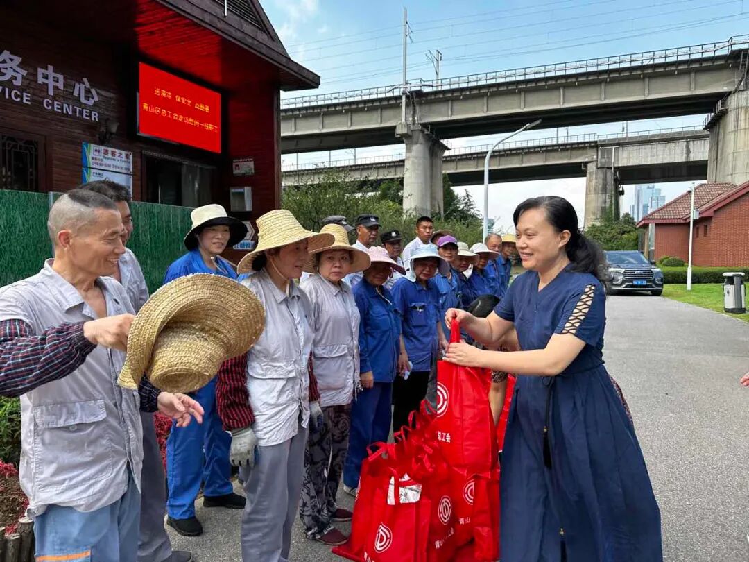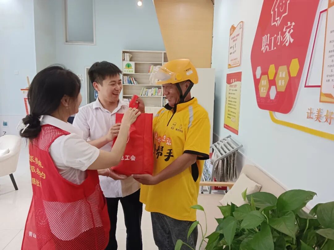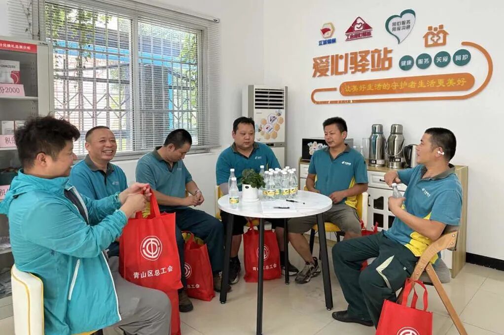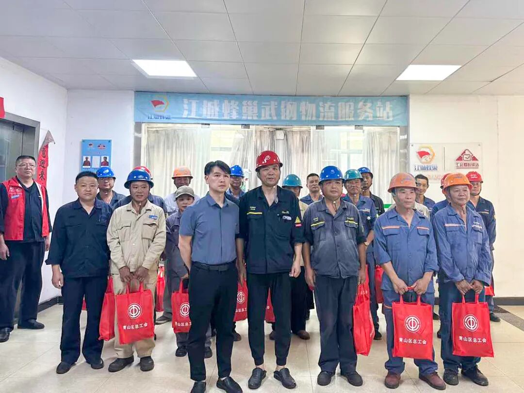 8月1日起,青山区总工会慰问组分别在戴家湖公园、奥山滨江社区、新沟桥街蒋家墩社区、冶金街名流社区、武钢外贸码头等工会户外职工爱心驿站为园林工人、快递外卖员、环卫工人、保洁员、货车司机等职工代表“送清凉”。