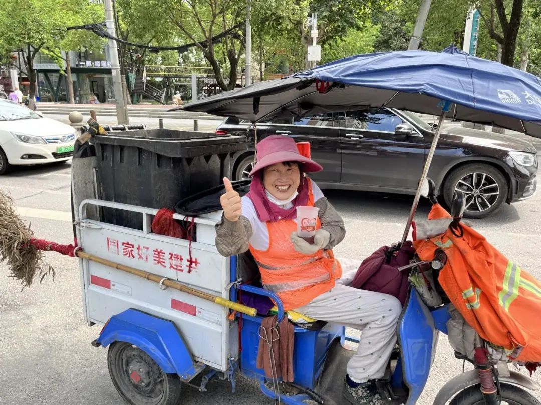 “感谢社区的关爱,为我们送来了清凉,真是太贴心了。”环卫工人王阿姨收到充满爱意的消暑物资后开心地说道。