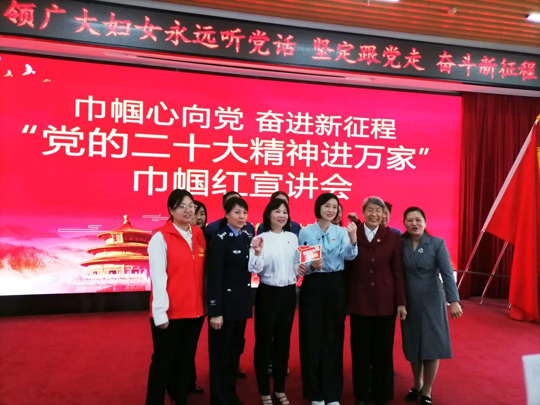 近日,青山区妇联在钢都花园街道绿景苑社区举办“党的二十大精神进万家”巾帼红宣讲活动,邀请党的二十大代表、全国三八红旗手、全国最美家庭、荆楚楷模、新时代巾帼英雄、最美妇联人等优秀典型人物开展宣讲,推动党的二十大精神走进基层、走进妇女、走进家庭,引领广大妇女群众更加紧密地团结在以习近平同志为核心的党中央周围,坚定不移听党话、跟党奋进新征程。青山区妇联全体干部、街道社区部分干部、社区妇女群众代表、最美家庭代表等参加了本次活动。