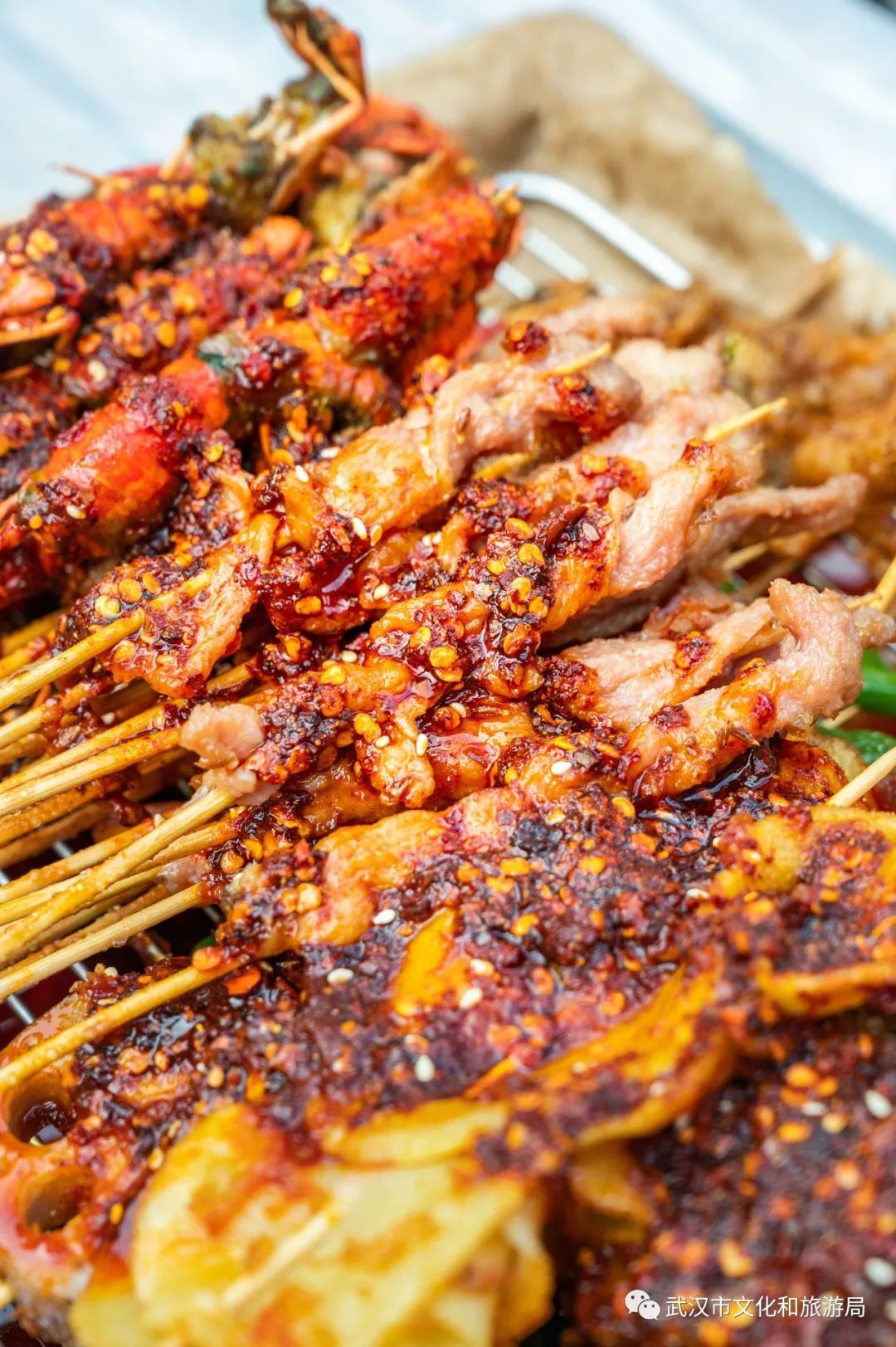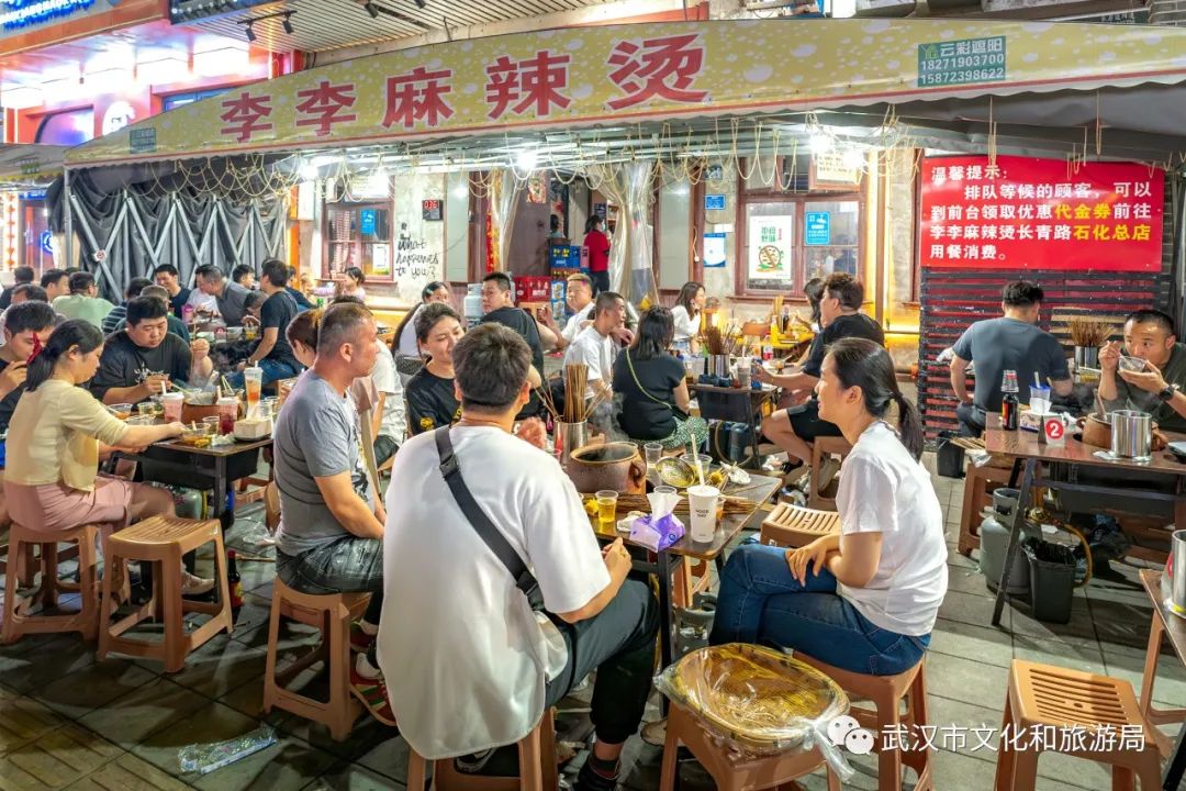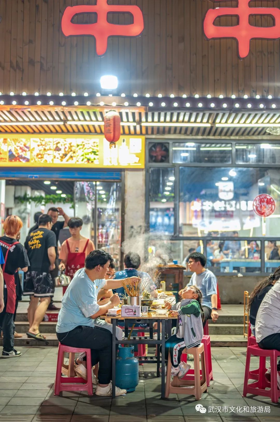 逛够了、玩累了,就去填饱肚子。随便找个出口回到街面,沿着工业一路直走,就到了武汉宵夜氛围最好的「恩施街」。