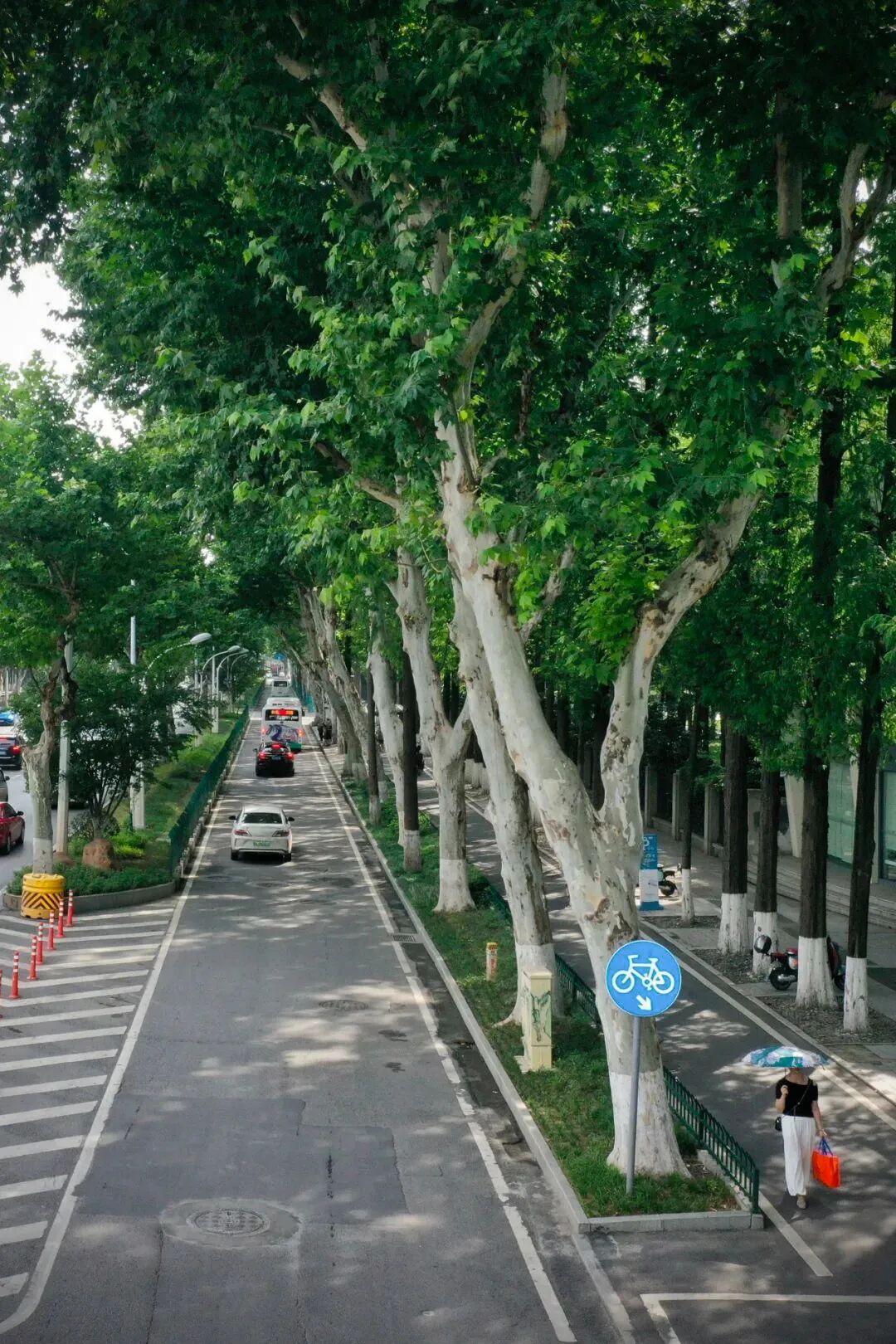 你会经过每年都入选“武汉最美林荫道”的「和平大道建设一路至三弓路」路段。它是市区少有的,每侧栽种三排行道树的道路,法桐、杉树投下浓密绿荫,地面长出美丽光斑。