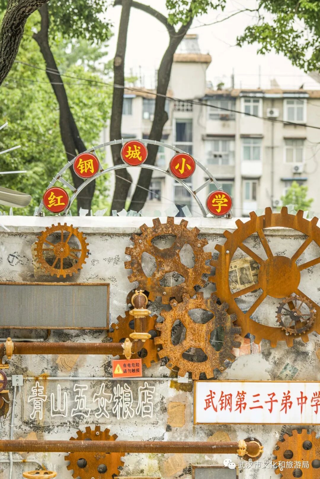 翻新后的恩施街,多了十来处工业风打卡装置:热电宾馆、电视墙、老式收音机、搪瓷盆……记录着青山的工业历史。
