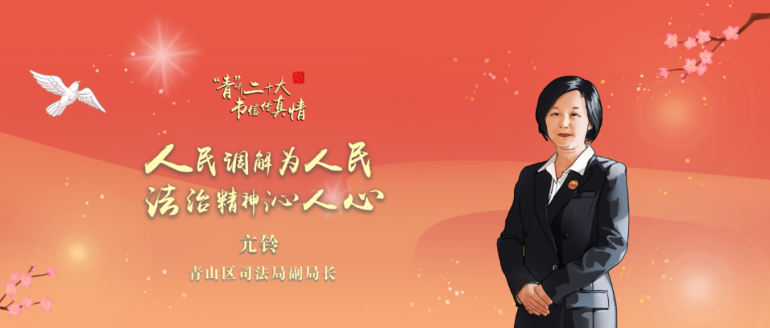 见字如面。我是青山区司法局副局长亢铃,也是我区583名人民调解员中的一份子。扎根基层从事司法行政工作的30余年里,很荣幸能得到居民们的信任,一声声亲切的“铃铛姐”,让我与居民的关系日益亲近。我也有幸得到上级领导的肯定,被司法部评选为“全国模范人民调解员”和“调解为民好榜样”。今天我想通过这封特别的信件,跟广大人民调解员同仁进行交流,展望光明的法治前景。