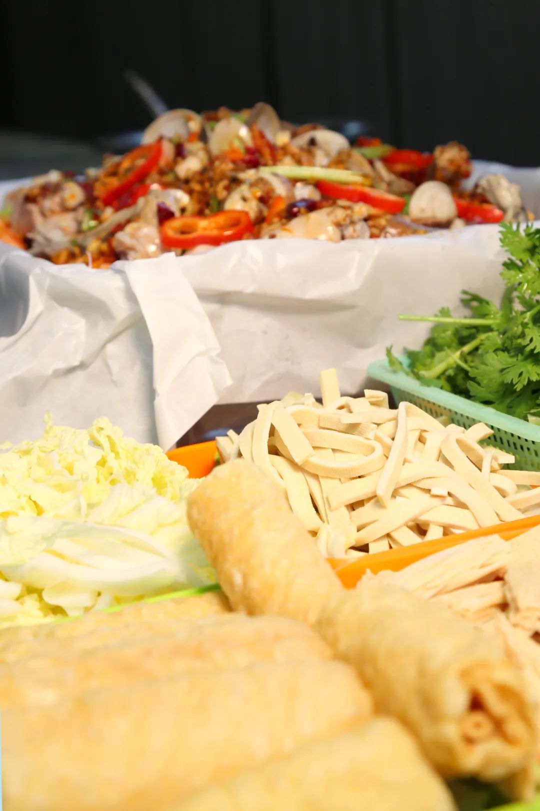 吃完鱼肉,似乎还有着一丝意犹未尽。作为资深吃货的店老板早已猜中食客们的内心,锅内加入早已熬制好的鱼汤,纸包鱼秒变涮汤火锅,加入牛肉卷、豆油皮、土豆片、热干面、金针菇……荤素搭配,健康营养。鲜香麻辣,让你一次吃到过瘾!