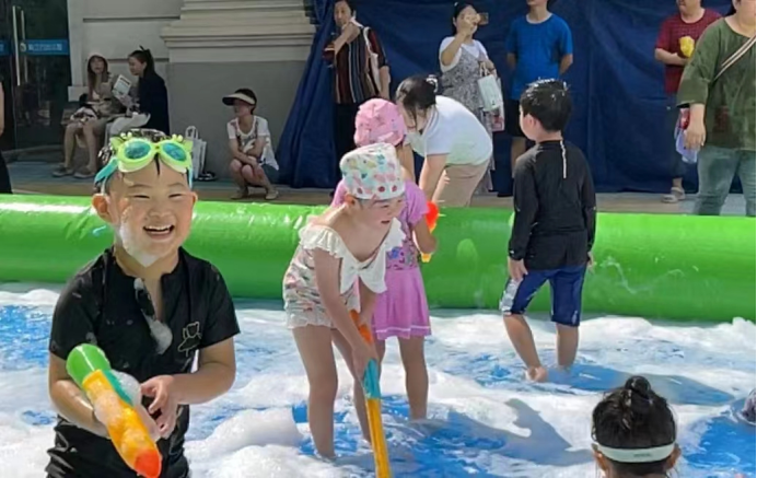 红卫路街道和平社区新时代文明实践站联合爱立方江南春城幼儿园准备了一场精彩的泡泡狂欢聚会,带领辖区少年儿童嗨翻一“夏”。