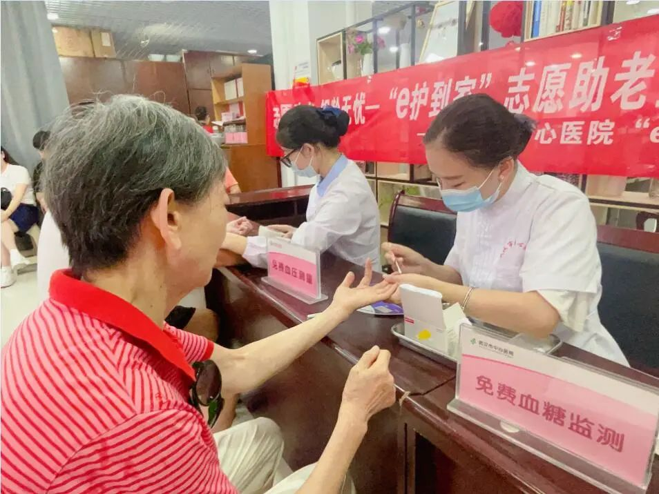 医护人员细心为老年居民量血压、测血糖,询问他们的身体状况、日常饮食习惯以及用药情况,细心叮嘱他们应该注意的事项,并对居民咨询的各类健康问题进行耐心地答疑解惑。