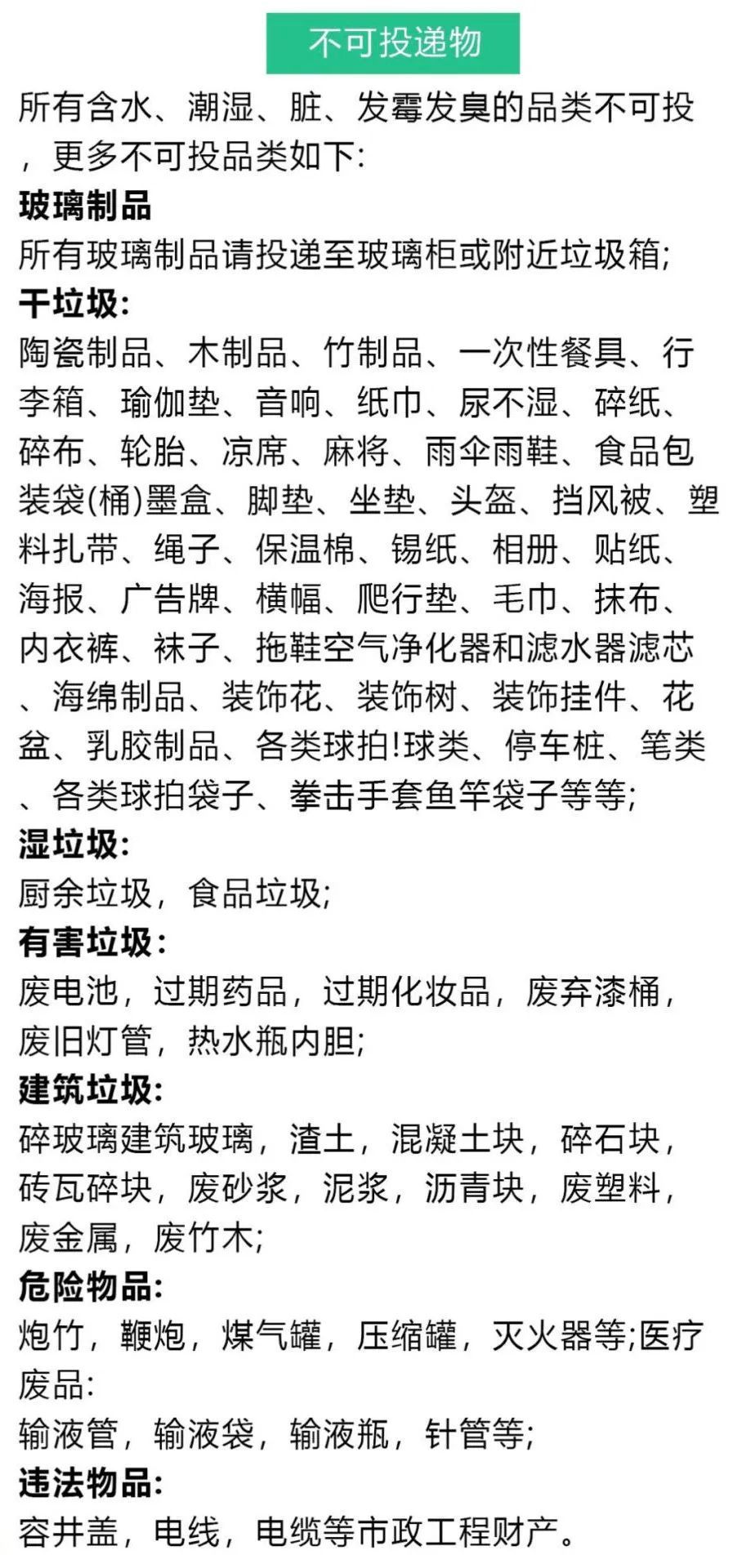 以下品类不可投递:
