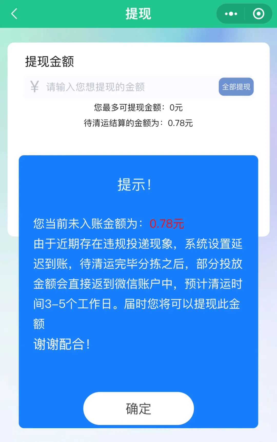 温馨提示:提现的余额直接进入“微信零钱”,如遇无法提现、提现失败等情况,可拨打客服电话咨询。