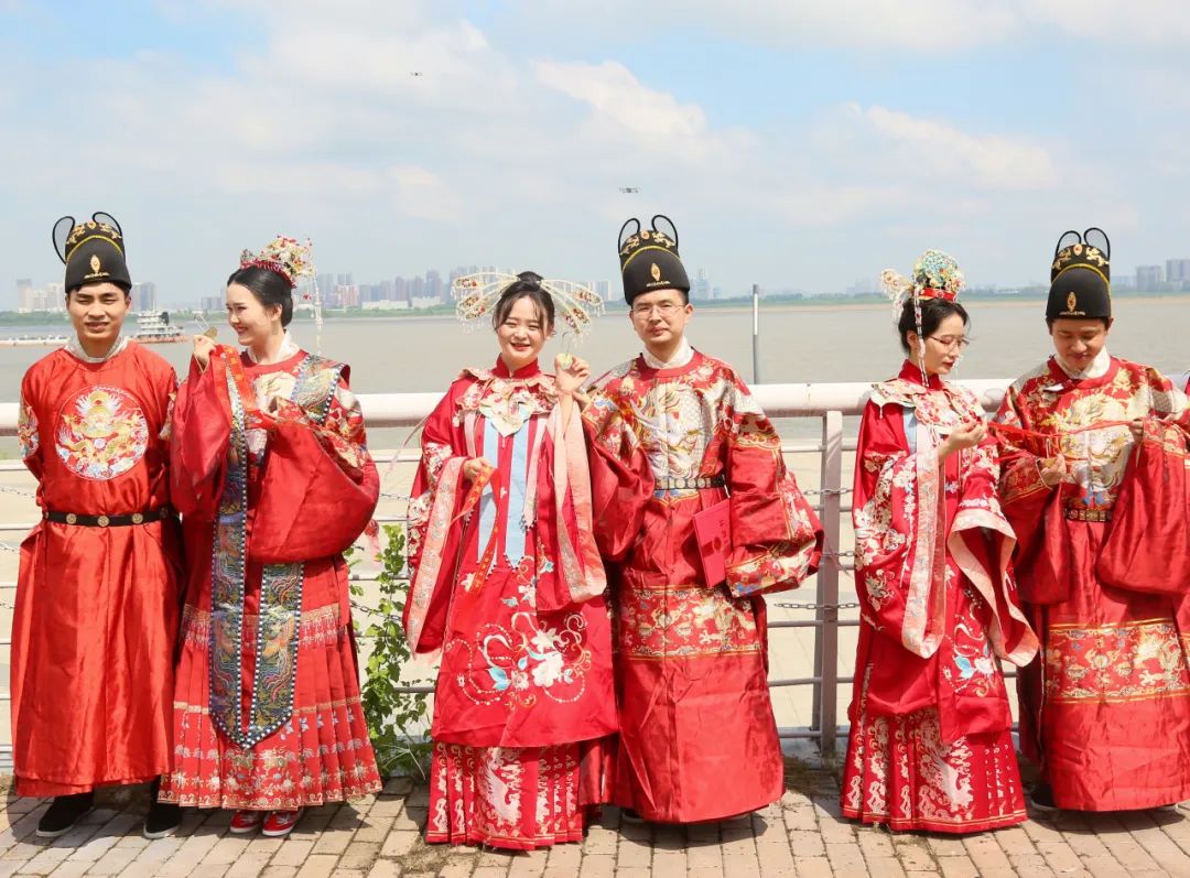 长江东去,江水为证。在长江边,新人们一起锁上同心锁,一生携手比翼,相依相伴,白头到老。