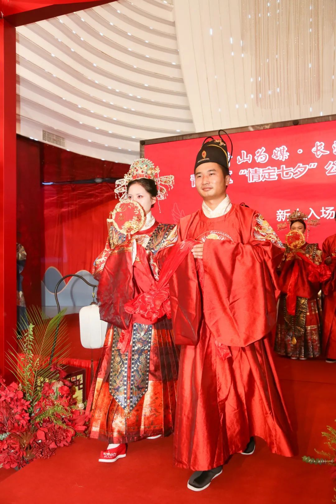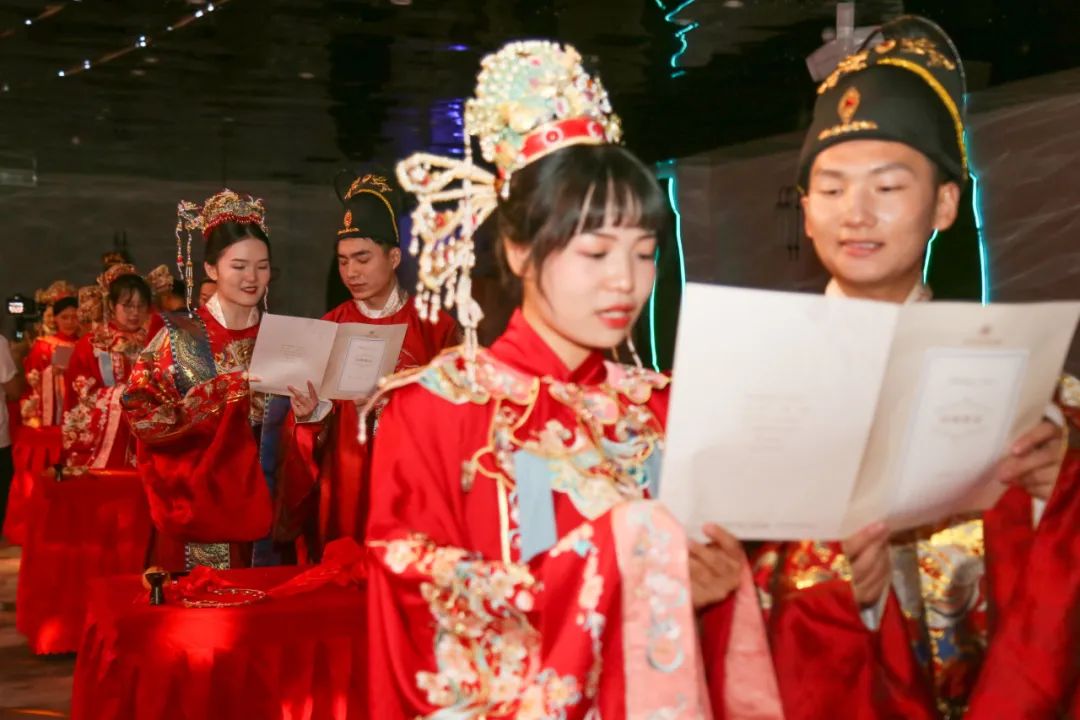 婚礼以中式婚礼集体举行,既隆重古朴、仪式满满,又简约时尚、健康文明。中华传统婚俗仪式感满满,七夕寓意长长久久的好彩头,都让新人们倍感幸福。