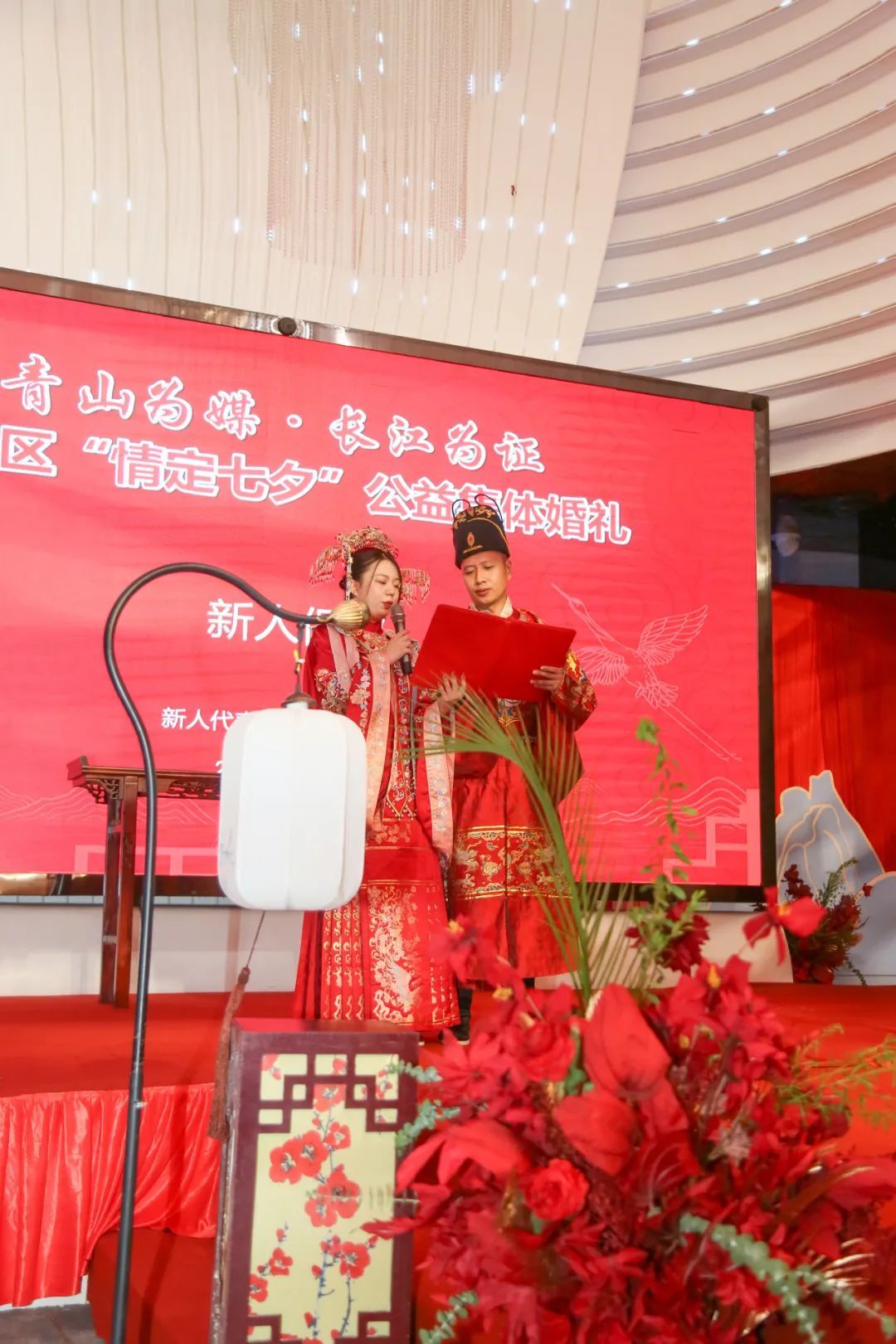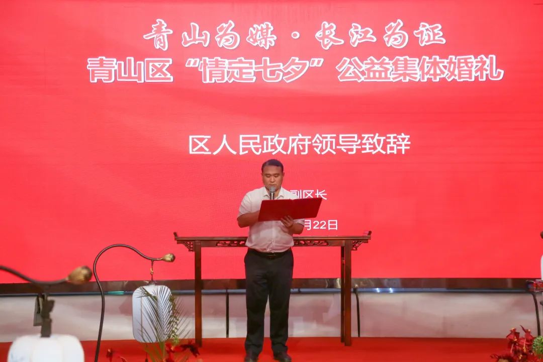 “这次是向建设现代化青山绿水红钢城青年朋友致敬的婚礼,必将成为新人和见证者永久的珍藏和走心的记忆,也为美丽青山镌刻下更加甜蜜醉人的印记。”青山区政府分管副区长现场向新人们祝福,“最好的婚姻是志同道合,最好的爱情是双向奔赴,希望你们一起投身创造武汉青山发展新奇迹的伟大事业!”