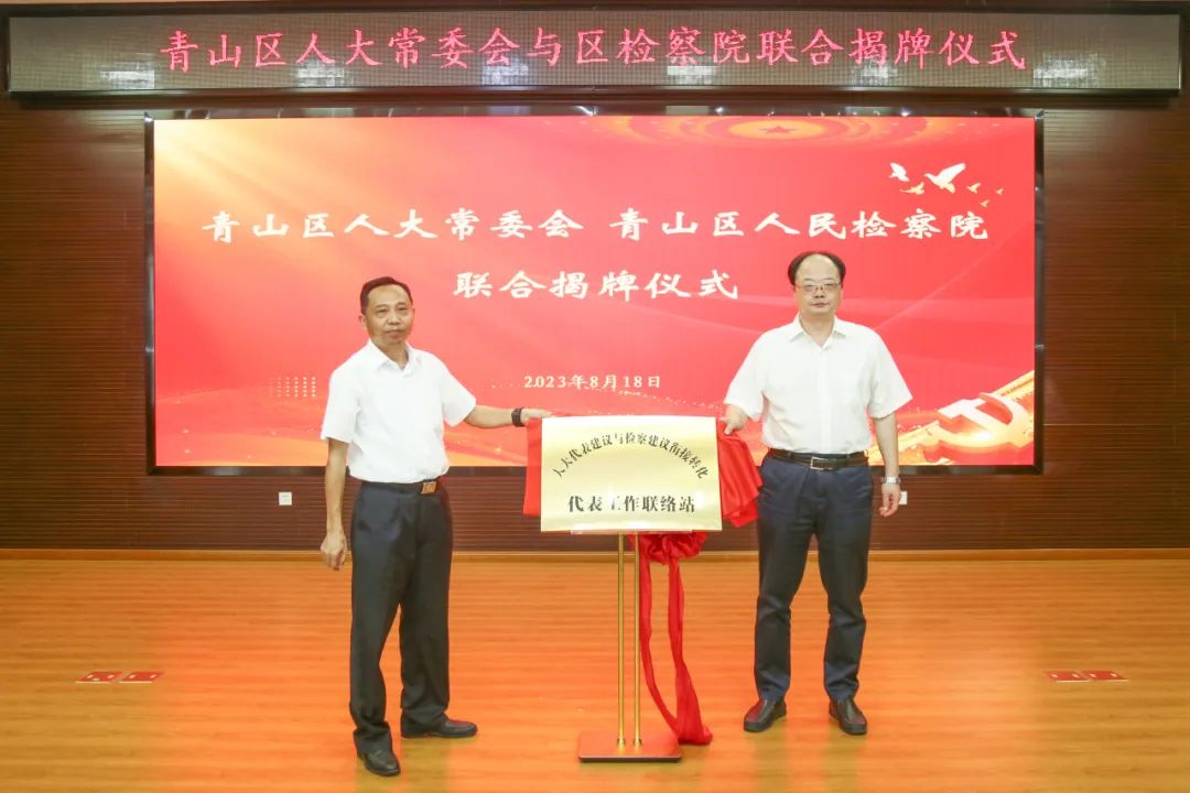 据悉,为推动人大监督与检察机关法律监督有机贯通、相互协调,年初,区人大常委会将代表建议与检察建议衔接转化列为深化改革项目,杨安主任带领主任会议成员多次到区检察院、街道社区开展专项调研,并于2023年6月,经主任会议研究通过了《青山区人大代表建议与检察建议衔接转化工作方案》,此次联合揭牌是区人大和区检察院在推动站点互设、人员互派等方面迈出的关键一步。
