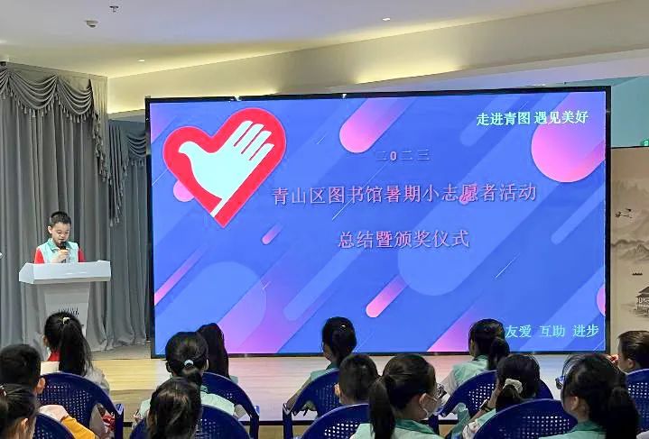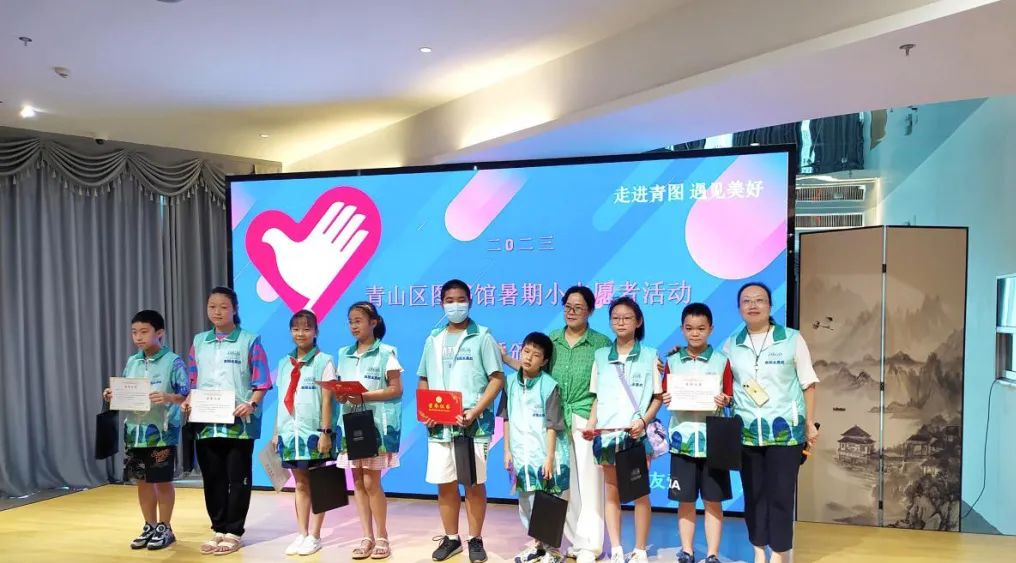 在这个悠长夏日,青山区图书馆留下了许多小志愿者们的印记。结庐在人境,而无车马喧,他们身体力行,用实际行动坚守了文明阅读的环境。在青山区图书馆小剧场,举办了“2023青山区图书馆暑期小志愿者”活动总结暨志愿者证书颁发仪式。