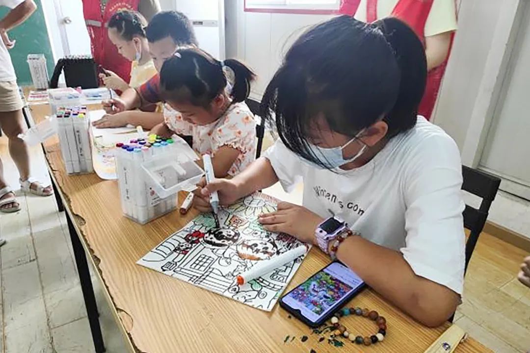 孩子们兴致盎然,通过手中的画笔描绘出心目中的美丽社区、文明家园。图画内容丰富多彩,楼房、小花园、蓝天、白云、太阳……这些元素无不彰显出孩子们心中对社区的浓浓深爱之情,把对社区的美好祝愿融入自己精心绘制的作品中,并写下“我爱我家”“美好生活共同缔造”“我心中的美好社区”等祝福话语。