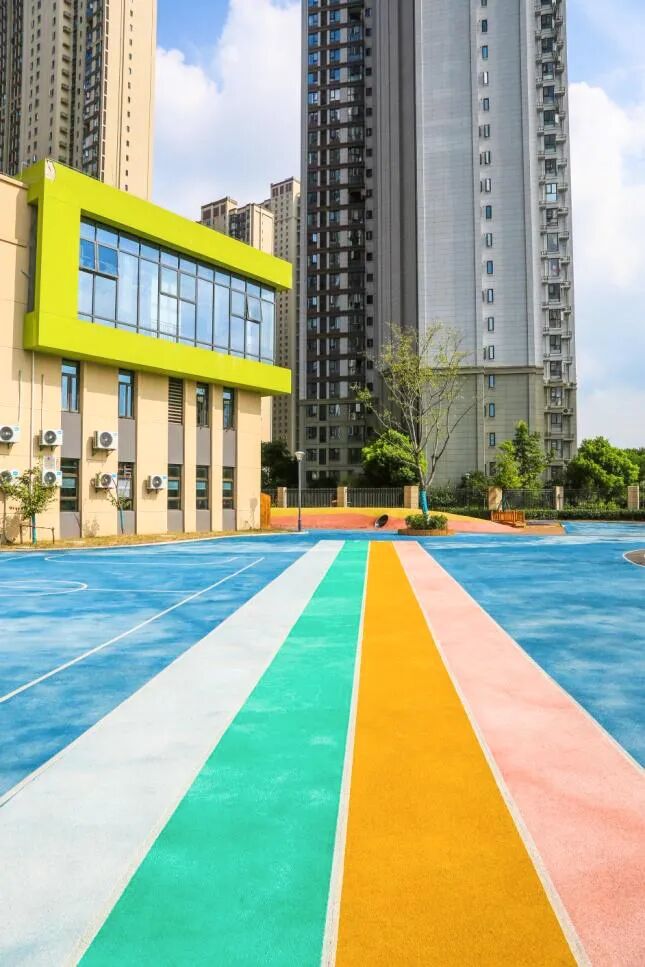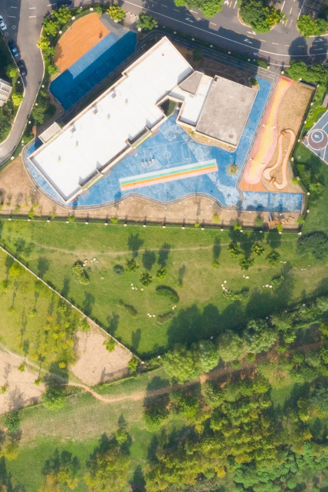 由于毗邻三环线和戴家湖公园,户外活动区显得格外开阔通透,结合生态绿色,以森林为主题的活动区,让幼儿园与自然融合在一体。