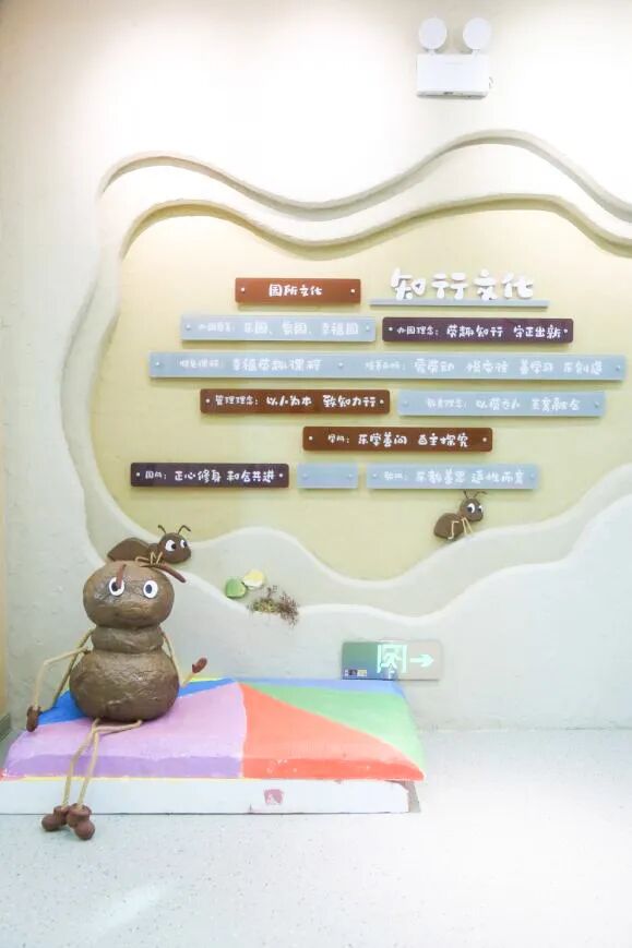 以小蚂蚁为幼儿园主题形象,小蚁知行园、小蚁故事窝等等,让孩子们学习小蚂蚁温和谦虚,勤劳善思,动脑健体。
