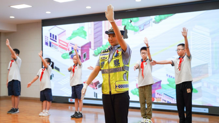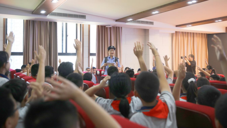 9月1日开学第一天,武汉市公安局青山区分局(钢城分局)的警花警草走进吉林街小学,携手“少年警队”带来一堂趣味十足的“安全第一课”。