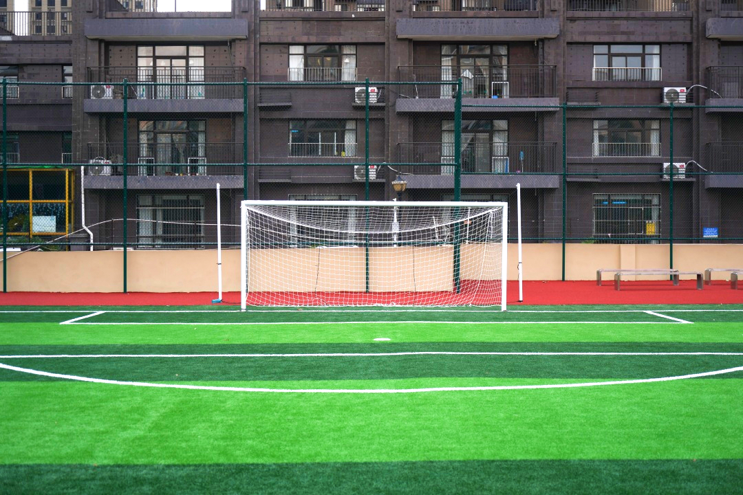 该运动场总占地面积6600平方米,含一块7人制人工草地足球场、3块半预制硅PU标准篮球场和环绕篮球场的200米塑胶跑道。