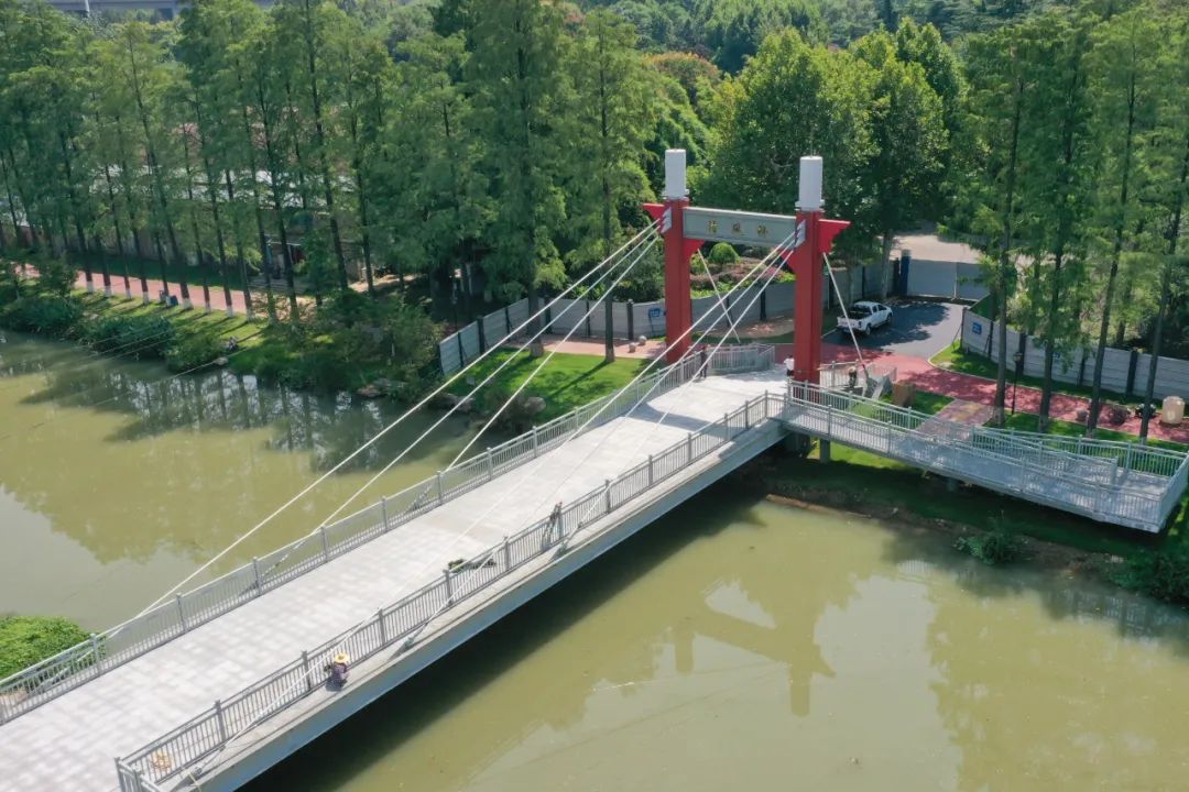 它不仅是一座兼具景观打造和便民通行的生态桥,也是武汉市公园内的第一座不对称设计的斜拉索桥。
