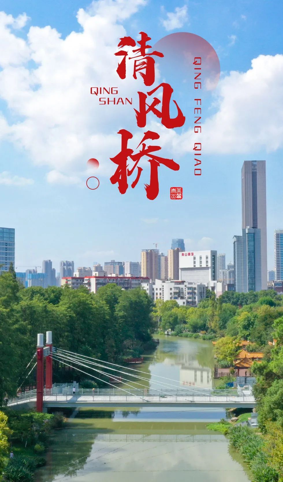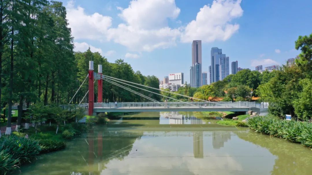 目前,清风桥正在同步实施桥体亮化工程、周边绿化提升工程,今年国庆节前夕清风桥将正式对外开放,该桥必将成为青山公园内又一网红打卡处。