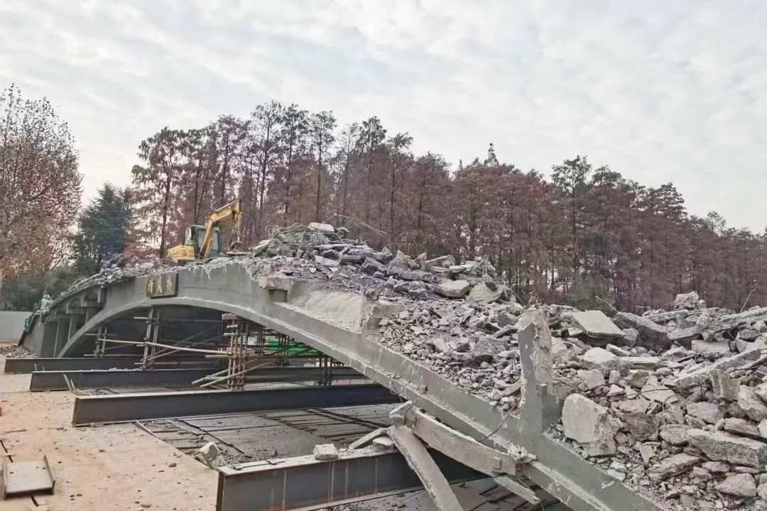 谈起清风桥重建的施工情况,施工单位相关负责人表示,拆除原桥是重建工程中最难的工作任务。