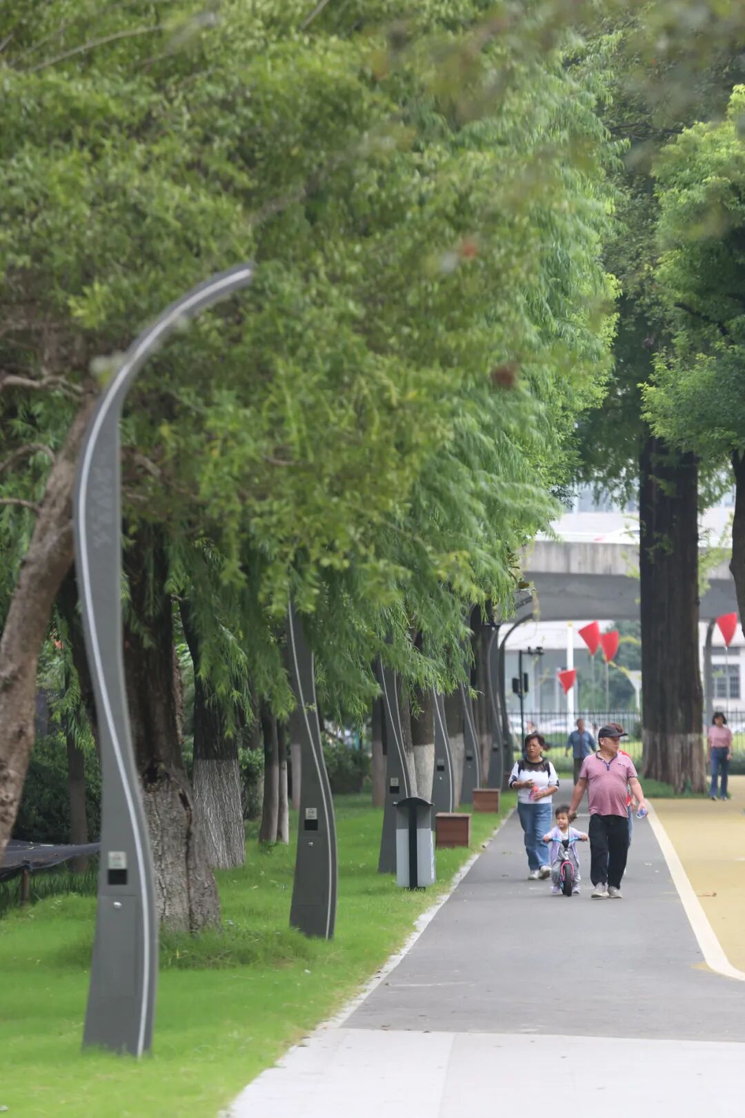 当你沿着黄色环形健身步道徜徉时