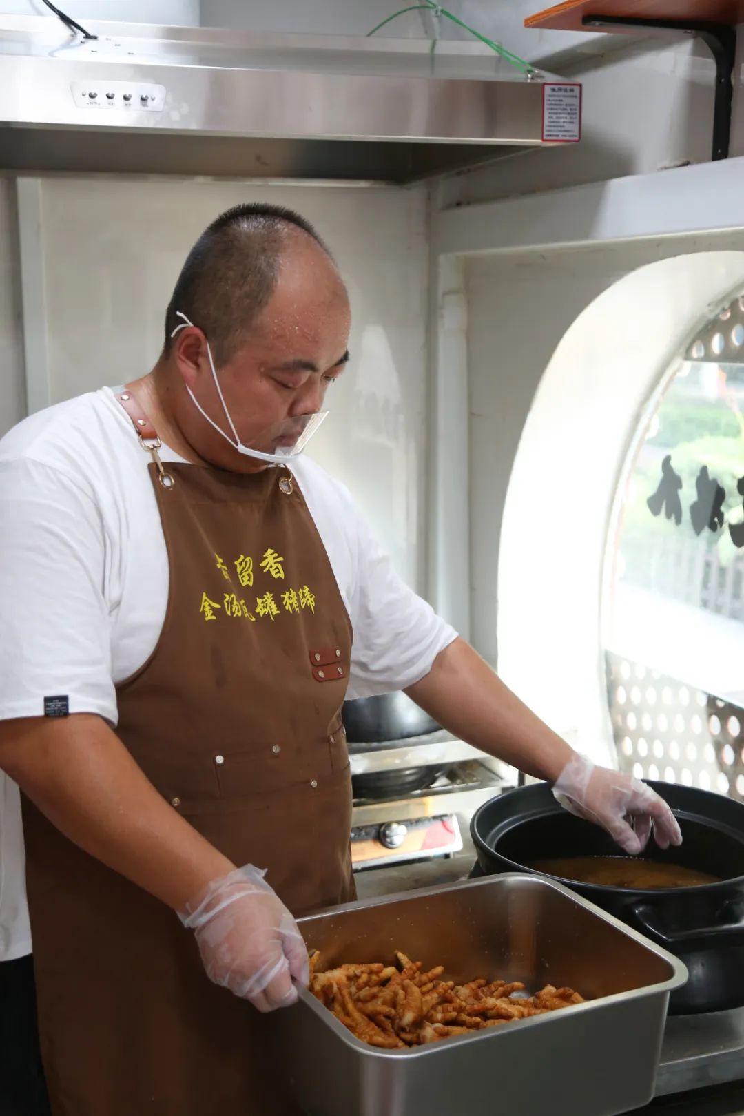 下午一点半,刚入不惑之年的赵老板如往常一样,带着一上午辛苦处理过的猪蹄、鸡爪等半成品,在这间造型别致的钢构门店里进行最后的卤制工序。