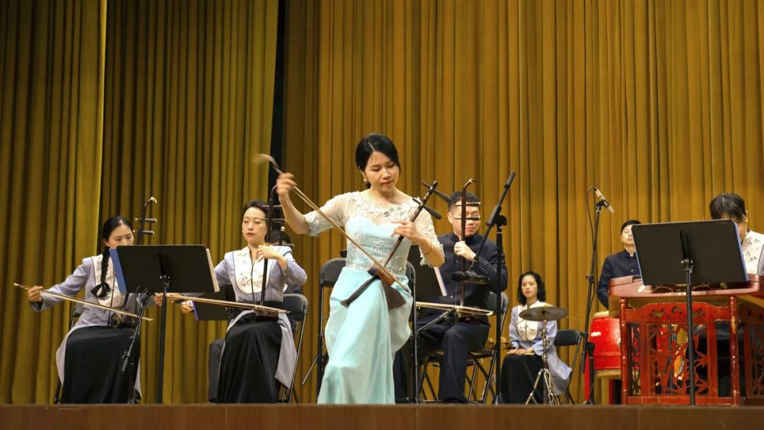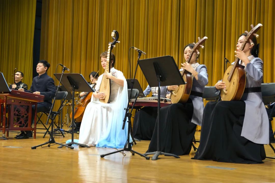 从欢快、轻松的民乐合奏《可爱的玫瑰花》,旋律优美动人的《桂花调》,到激扬豪放的琵琶齐奏《秦川抒怀》,独具地方特色的民乐合奏《黄鹤楼》,再到质朴自然,感情真挚的民乐小合奏《小河淌水》,为观众们献上了一场丰富多彩的听觉盛宴。一曲奏罢,全场观众都沉浸在旋律之中。