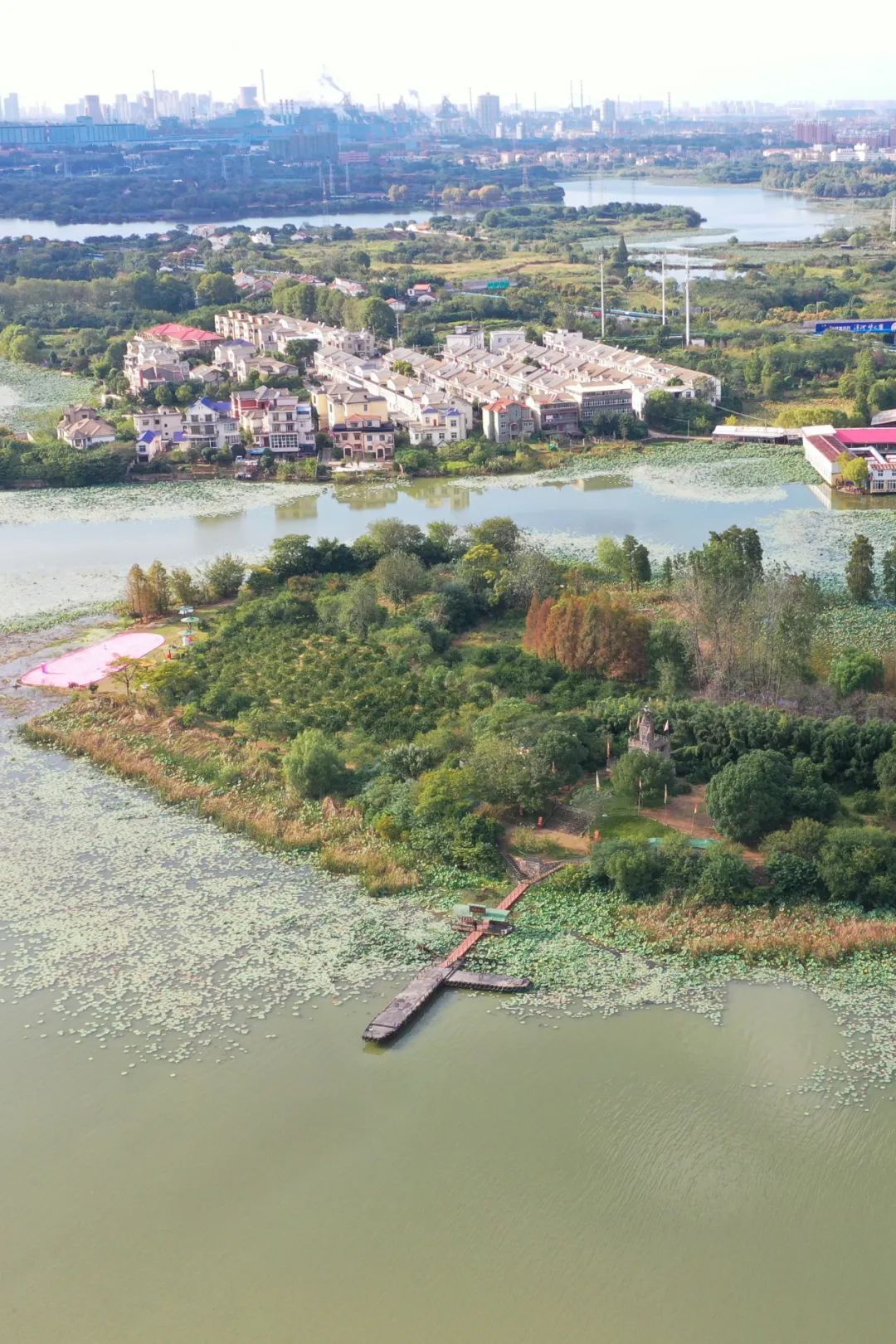 三面环湖的水庙岛