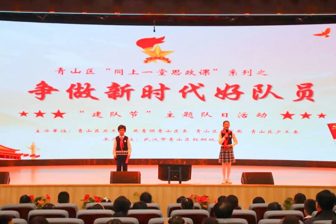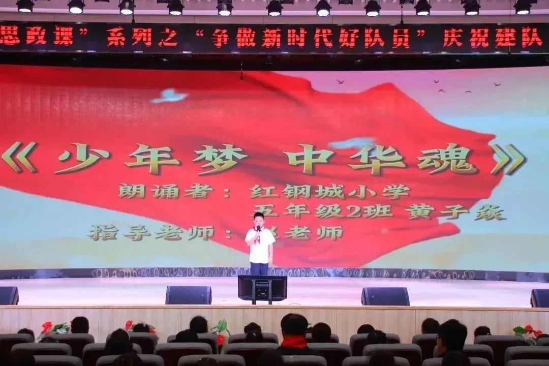 “红领巾飘呀飘起来,队旗飘飘放光彩,星星给我梦,火炬给我爱,亲爱的党对我们最关怀,争当好少年,立志早成才,我们要做报效祖国的新一代……”10月12日上午,青山区关工委、区教育局、团区委及区少工委在红钢城小学举办了“争做新时代好队员”建队节主题队日活动暨“中华魂”主题演讲活动。
